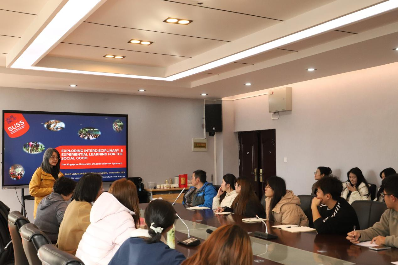 2025年11月27日,初冬的贵阳暖意融融,新加坡社会科学大学博士、副教授 Lim Chern Yin在探花直播 D406为探花直播 师生开展学术讲座。Lim Chern Yin副教授以“探索跨学科与体验式学习:为社会公益而学(EXPLORING INTERDISCIPLINARY & EXPERIENTIAL LEARNING FOR THE SOCIAL GOOD)”为主题,聚焦高等教育创新与社会价值的深度融合。本次讲座由探花直播 社会工作系主任胡彬彬教授主持,外国语学院副院长赵燕教授任翻译,探花直播 师生代...