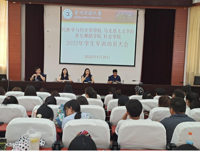 探花直播 、民族学与历史学院、马克思主义学院、音乐舞蹈学院联合开展2022年学生军训动员大会