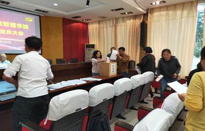 会议进入第二环节,由两个教工党支部分别在行政楼303会议室和第五会议室召开了两个教工党支部全体党员大会,进行支委选举。整个选举有序有效,公平公正公开。经投票、唱票两个环节后,两个教工党支部分别选举了支部委员。其后,两个教工支部支委召开了第一次支委会议,明确了支部委员分工。最后,全体党员返回第五会议室,王红梅副书记(主持工作)公布了两个教工党支部支委选举结果:教工第一党支部由陈自强老师(教授,博士)担任支部书记,由乔姗姗老师担任组织委员,由石慧老师担任宣传委员;教工第二党支部由张禹青老师(副教授,博士)担任,由刘玉连老师担任组织委员,由公衍勇老师担任宣传委员。