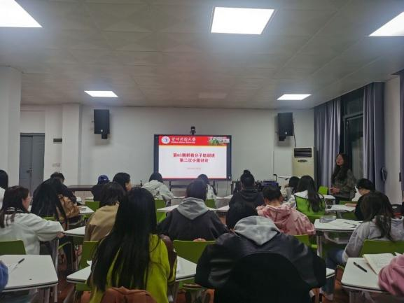 第65期入党积极分子培训班在3号教学楼401教研室,开展以“结合自己生活、学习和工作实际以及身边的榜样事迹,谈谈如何以实际行动践行党的宗旨”为主题的小组讨论会。本次小组讨论会由培训班小组副组长杨盛叶同志主持,培训班指导教师袁迎春同志以及培训班全体学员参加了此次小组讨论会。