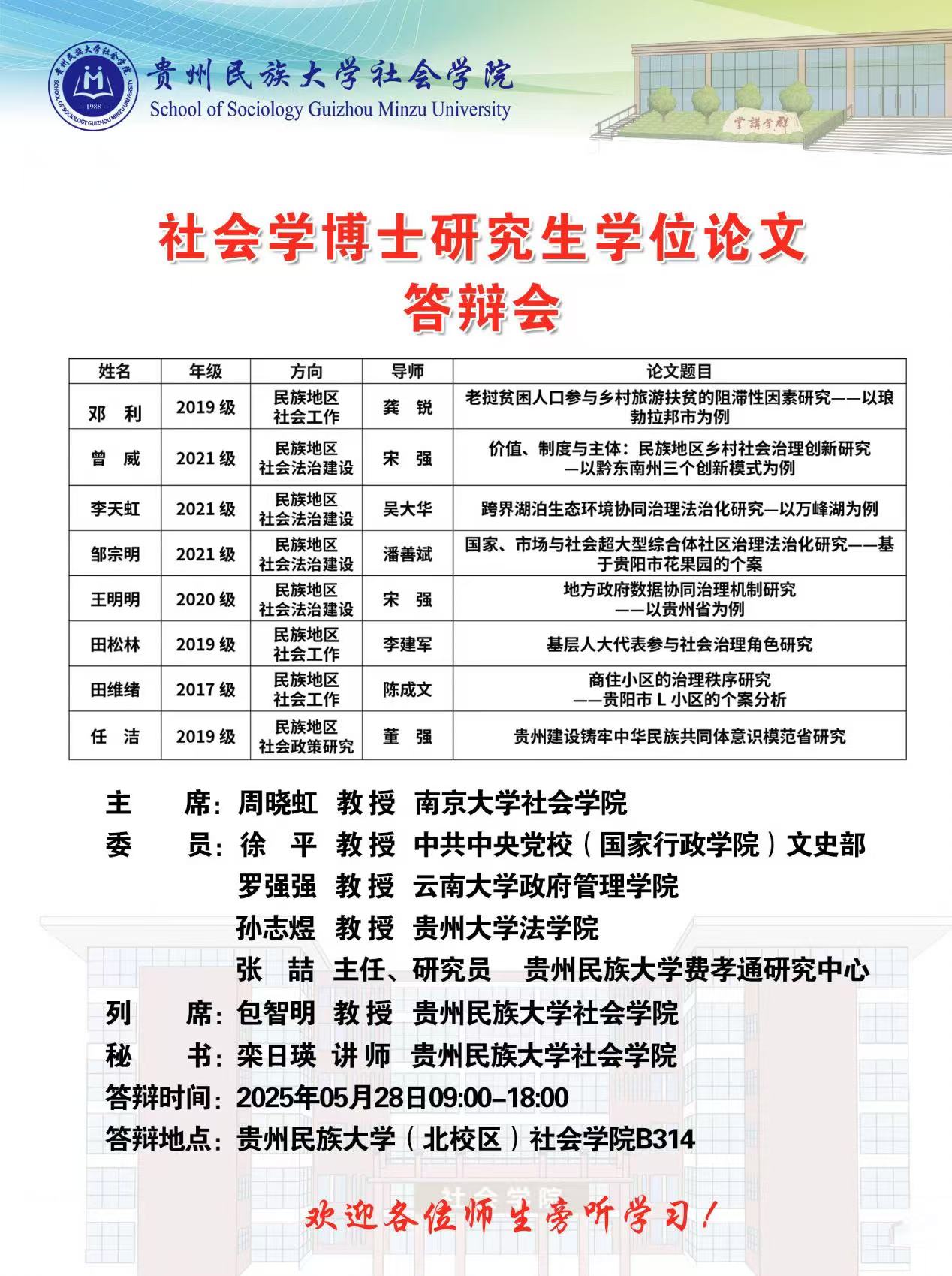 2025届社会工作专业 硕士学位论文答辩议程(专业型)