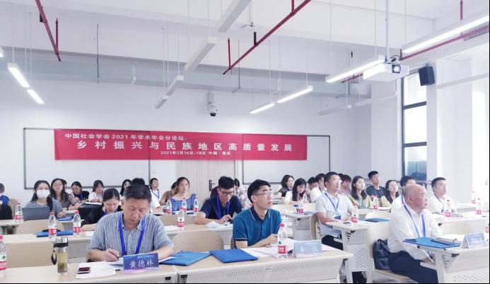 本次年会的主题为“社会现代化与中国特色社会主义社会学”。本次年会会期两天,共有线下和线上73个分论坛,紧紧围绕“社会现代化与中国特色社会主义社会学”这一主题,从现代化与中国特色社会主义社会学理论、社会治理、乡村振兴等多方面展开深入研讨。其中,由我校社会学与公共管理学院、贵州省社会科学院社会研究所、贵州省社会学学会承办,贵州省高等学校人文社会科学研究基地——民族文化与民族地区社会管理创新研究中心、贵州省人文社科示范基地——民族地区社会治理创新研究基地、贵州省人文社科示范基地——乡村振兴与社会建设研究基地、贵州省社会科学界联合会、贵州省教育厅民族文化与民族地区社会管理创新研究中心“学术先锋号”和贵州省社会科学界联合会——基层社会治理研究团队共同协办的“乡村振兴与民族地区高质量发展”论坛在重庆工商大学涵智楼成功举办。