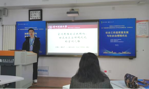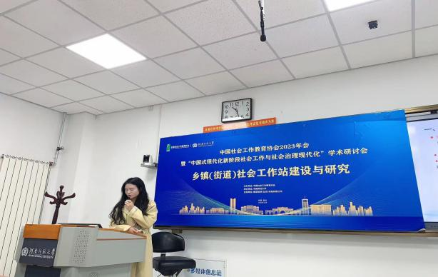 2022级博士研究生阳忠艳在分论坛13,以“‘六社’协同:社工站参与社区治理的路径”为题进行小组发言。