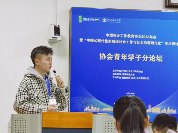 2023级博士研究生汤皓然在第五届青年学子分论坛,以“陪伴、链接与颠倒的实践感:环境治理中社会工作者的角色形塑过程”为题进行小组发言,并受邀担任论坛第三单元“社会组织与社会工作实务研究”的主持人。同时,本论文获得中国社会工作教育协会2023年会第五届青年学子分论坛征文一等奖。