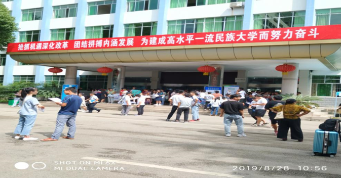花溪校区团委学生会成员在迎新点开展迎新工作,27日的迎新工作于晚上七点左右结束。2019年8月28日上午八点,全校的迎新工作正式开始,我大学城校区的部分成员和花溪校区的团委学生会全体成员共同参加了此次迎新工作。