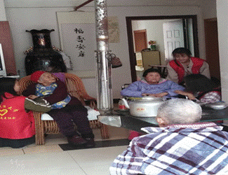 本次活动中,各个参与的志愿者都很积极。我们到敬老院时老人们正在闲坐着。于是我们的志愿者按照负责人的安排,将我们所准备的礼物送给爷爷奶奶们,开始亲密的跟老人互动,有陪老人下棋的,有陪老人聊天的,也有为老人按摩的,还有些同学帮忙打扫卫生。随后就是我们的表演环节,有唱歌、朗诵、舞蹈。老人们也积极参与其中,其乐融融。节目表演的最后一个环节是以同学们和老人们一同跳广场舞结束此次的活动。