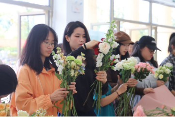 活动第一阶段,由花艺师讲解插花知识和注意事项。第二阶段为同学和老师分工协作搭配插花。在插花的过程中,大家发挥出了自己的创意和想象力,创作出了许多精美的花艺作品,有配色协调的美丽花束和艺术感满满的花篮。