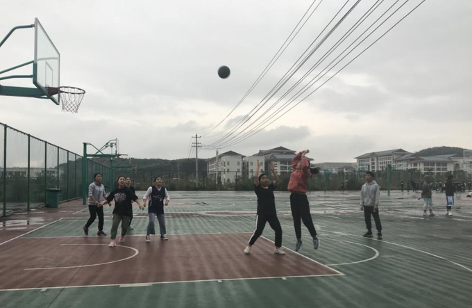 上午10:00,半决赛第一场是女子组——17行管VS19公管2班。比赛开始,双方快速进入状态,球场上矫健的身姿、飒爽的脸庞,都是自信的表现。那一道道优美的曲线,是球划过的痕迹。摇摆的马尾,轻盈的步伐在球场上摇曳夺目。最后,17行管完胜19公管2班获得女子组季军。