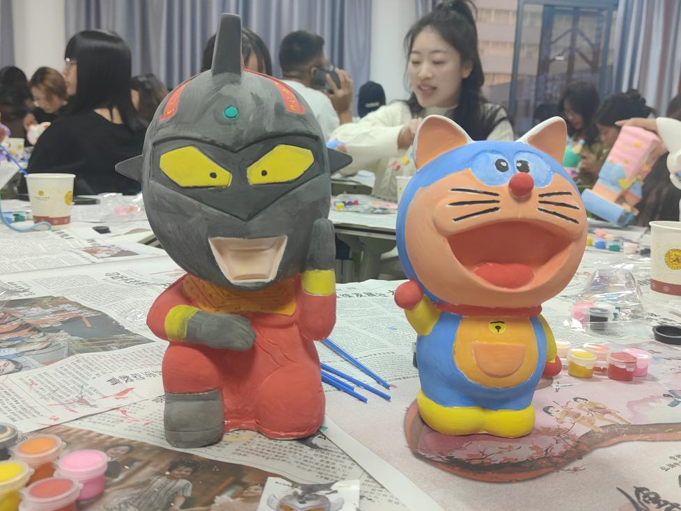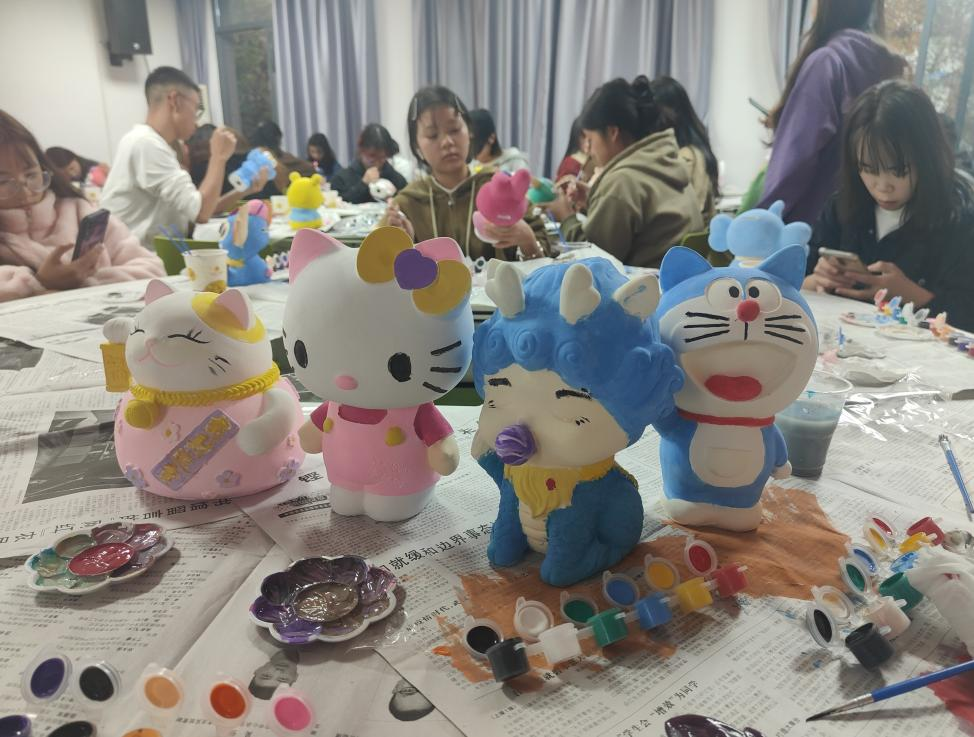 活动伊始,同学们便迫不及待地投入到涂鸦的世界,手握笔刷,轻触石膏,一涂一抹间,色彩在素白的石膏胚上纷飞,脑海中的奇思妙想也在笔刷下流转。最后,经过同学们的认真创作,一个个色彩斑斓、憨态可掬、古灵精怪的石膏娃娃便在大家面前纷纷呈现出来。
