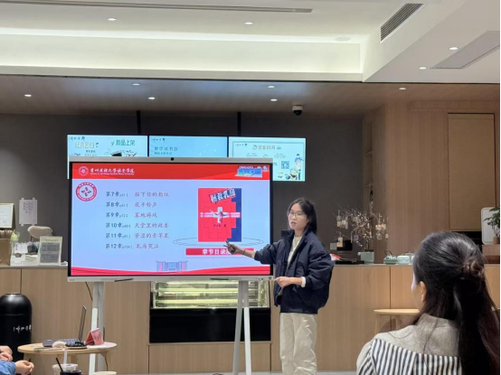 金骏玲老师作为分享嘉宾。为营造更好的读书氛围,在读书会举办前期,群学咖啡厅为本次读书会设置专门的海报,并在店内屏幕进行宣传展示,吸引了来自文学院的同学以及花溪区悦真社会工作服务中心负责人、花溪区迎宾社区妇联副主席彭洁也加入此次读书会。