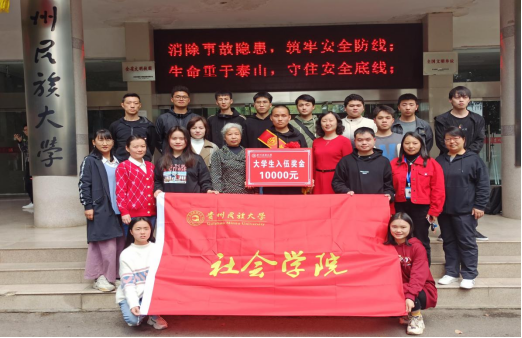 新兵同学佩戴绶带并颁发入伍奖励金和纪念品。入伍新兵潘昌显同学向学院和老师的培养关怀表达了深切的感激,承诺将把学院优良的学风带进军营,为军队的数字化建设贡献自己的力量,不负学院、老师以及家人的期望,争取早日立功。