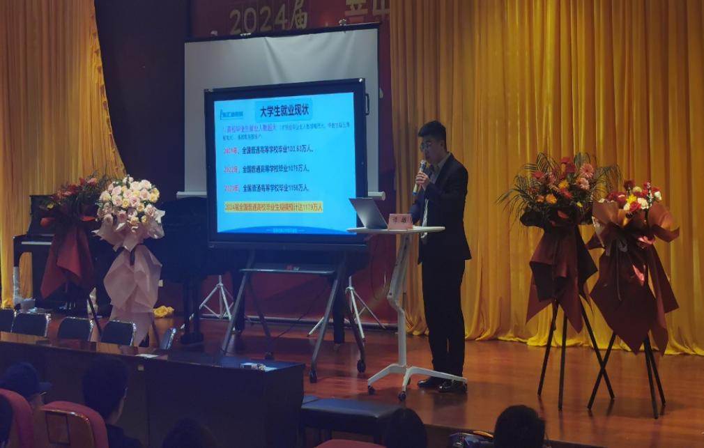 北校区群学讲堂成功举办2024届就业指导讲座。本次讲座由贵州东汇达教育科技有限公司谭雄老师主讲,学院党委书记李黎、副院长卫松、辅导员文琴老师以及2024届毕业生参加此次活动。