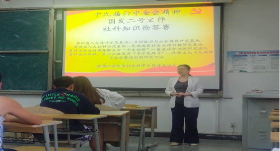 本次抢答赛内容包括十九届六中全会精神、国发二号文件精神、贵州省第十三次党代会精神、乡村振兴、社会发展、社科宣传等方面的知识。抢答期间,同学们展现了新时代大学生们关心时事、爱国爱家、博学多才的精神风貌。
