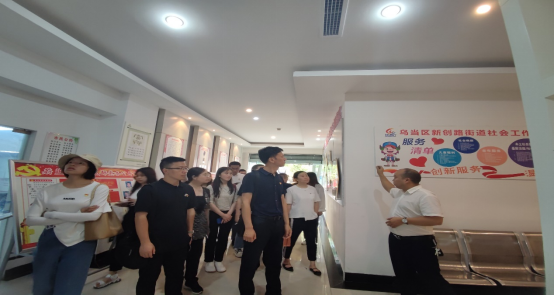 师生代表、基地核心成员康红梅教授及成员,在创新蔚蓝社会工作服务社负责人聂泽俊的带领下参观了服务社,让成员了解和学习社会组织在基层社会治理方面的策略和方法以及所取得的成功经验,提高了基地成员对社会治理理念和实践的认知水平。