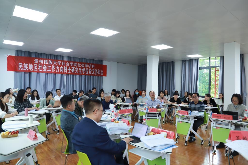 举行民族地区社会工作方向博士研究生学位论文答辩会,本次答辩委员会共由五位校外专家组成,南京大学周晓虹教授担任答辩委员会主席并主持会议,答辩委员分别为云南大学谭同学教授、云南民族大学朴光星教授、贵州省社会科学院王兴骥教授、贵州信访局朱华琪处长实务专家。