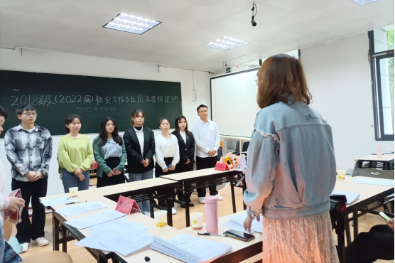 2018级社会工作专业毕业生论文答辩在三号教学楼举行,符合答辩要求的毕业生参与了本次答辩。社会工作教研室全体老师出席此次毕业论文答辩。