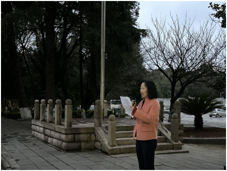 早上7点,国旗护卫队的队员们庄重严肃地伫立于旗杆一旁,个个队员朝气蓬勃,身姿挺拔,整装待发。与此同时,同学们在老师的指导下排列整齐。随后,国旗护卫队出旗,升旗仪式正式开始。随着《义勇军进行曲》的响起,五星红旗在全体师生的注目下冉冉升起。礼毕后,由探花直播