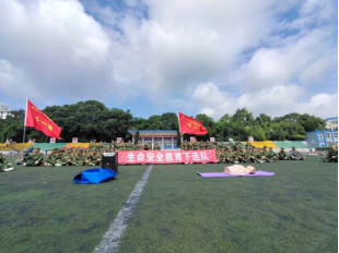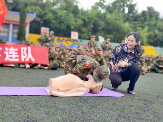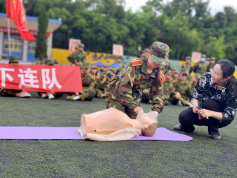 于2022年7月8日,在花溪校区军训训练场开展了“生命安全教育下连队”主题活动,为花溪校区参训同学进行心肺复苏现场教学。