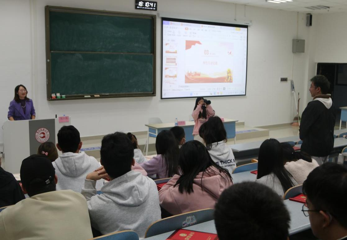 党委副书记裴凡苗对全体学生干部作题为“壮筋骨有新担当 长才干有新作为”培训。裴书记对学生组织的基本概况作了整体的分析,并希望各学生干部应明确自己的目标,重新定位再出发;针对学生组织存在的问题从学生干部学习成绩、思想道德素质、弘扬正气、创新意识四个主要方面进行了总结;从学生干部应具有哪些素质、能力以及何为有担当三方面同全体学生干部进行互动交流;在“如何做一名新时代优秀学生干部”问题上,裴书记从站位、格局、思路三个方面和同学们进行了交流分享,并强调:学生干部要有担当就必须履职尽责、革故鼎新。