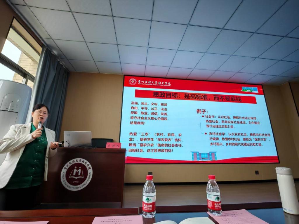 副院长卫松教授向全校介绍了教育部社会学专业虚拟教研室建设情况;社会学系贵州省金师康红梅教授汇报《农村社会学》课程思政建设情况;社会工作系胡彬彬教授根据《社会政策》课程进行了说课;毛刚强研究员介绍近年来社会工作开展社会服务的主要做法和下一步打算;课程思政协同建设的马克思主义学院孙雪雷老师对探花直播
