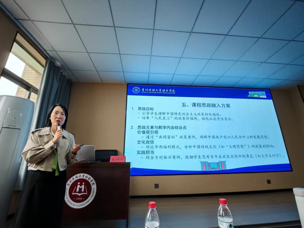 图3 社会工作系胡彬彬教授根据《社会政策》课程进行了说课