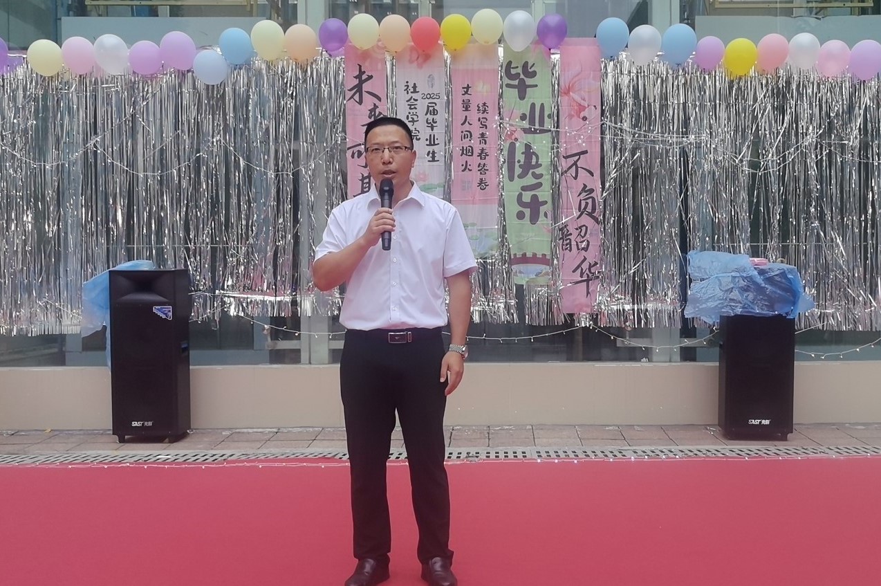 学院副院长卫松代表全院教师致辞,他首先表达了对2025届毕业生们圆满完成学业的祝贺,回顾了毕业生们收获的成长和成绩,并鼓励全体毕业生要立大志,胸怀天下,将个人理想的实现建立在对国家发展和社会进步的深刻理解之上,担当起强国复兴的历史使命,祝愿全体毕业生们在人生之路上走得更稳、更远。