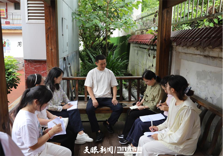 师生等组成的校媒融合调研组在遵义市新蒲新区虾子镇养老服务中心看到的场景。这座占地面积8000多平方米,前有庭院、后有花园的养老服务中心共有四层楼,每一层分布着十多间双人间,盛开的三角梅爬出了走廊,一个个红灯笼装饰着仿古的建筑,像极了度假酒店。