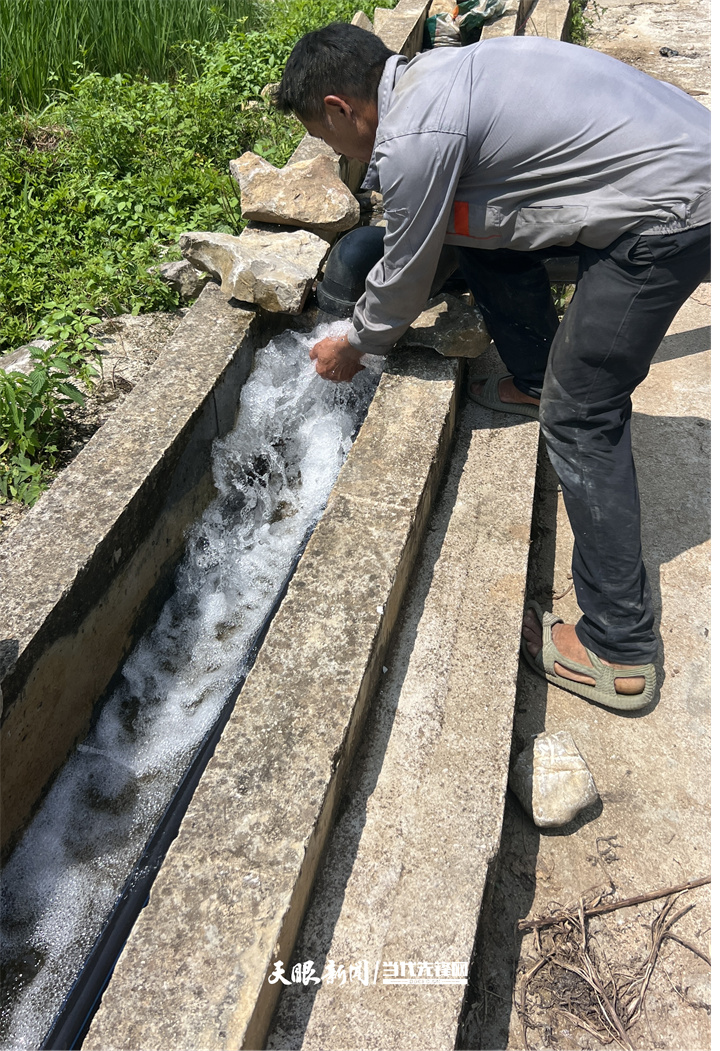 缺乏水源点?四季不断的溶洞水,被抽水机引到蓄水池,水管直接铺到田边。“有了水源,再也不用像过去那样靠天吃饭。”张才志拧开水闸,粗壮的管道立马喷涌出清水,“咕咚咕咚”注入灌溉渠,流进路边一大片稻田。